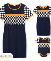 طقم الاخوة مكون من قميص بأكمام قصيرة مخطط مع شورت &, فستان مخطط