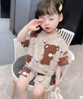 طقم بناتي قطني مكون من قطعتين بلوزة بأكمام قصيرة &, بنطلون، نمط حروف