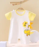 رومبير قطني انيق بأكمام قصيرة مع قبعة نمط الدب، للأطفال حديثي الولادة
