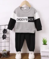 طقم مكون من فانيلا فاخرة بأكمام طويلة على أزرار أمامية وبنطلون بتصميم فرنسي يمنح لطفلك الدفء والأناقة في ان واحد
