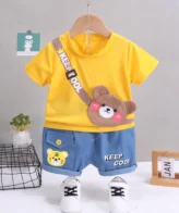 طقم بناتي 2 قطع بلوزة بأكمام قصيرة وشورت، نمط بطة