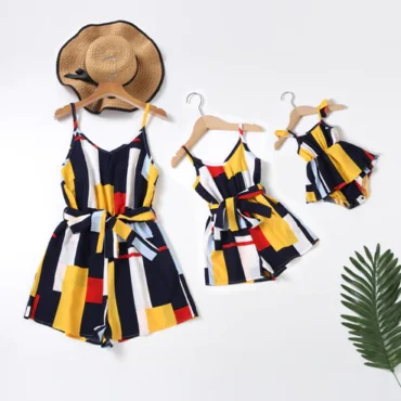 جمبسوت للأم وابنتها ملون انيق وبقماش بارد وربطة خصر
