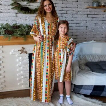 طقم فساتين للام وابنتها من القطن الناعم نمط منقط