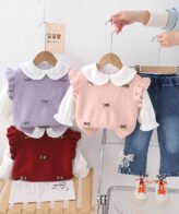 طقم بناتي فخم مكون من شميز بأكمام طويلة وسترة محبوكة وبنطلون جينز