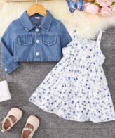 طقم حديث يتكون من 3 قطع، فنيلا بأكمام طويلة وجاكيت جينز بأكمام طويلة وبنطلون جينز للأولاد الصغار