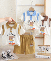 طقم ولادي مكون من قطعتين شورت مع تي شيرت ألوان متباينة