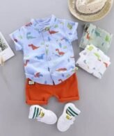 طقم انيق مكون من قطعتين تي شيرت وسروال قصير بطبعة ديناصور للأولاد الصغار