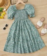 فستان بناتي باكمام قصيرة منفوخة نمط أنيق