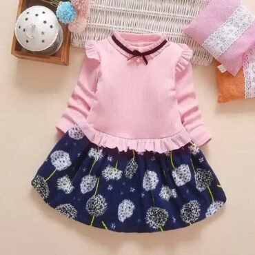 فستان بناتي مميز باكمام طويلة ونمط الورود الانيقة