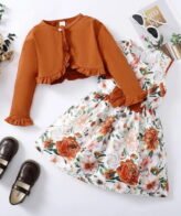 أفرول مثلث بناتي راقي بأكمام طائرة مكشكشة للاطفال حديثي الولادة