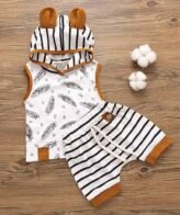 رومبير قطني انيق بأكمام قصيرة مع قبعة نمط الدب، للأطفال حديثي الولادة