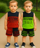 طقم ولادي صيفي مكون من قطعتين تي شيرت بدون أكمام و شورت بتصميم جذاب