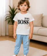 طقم ولادي انيق مكون من قطعتين تي شيرت بأكمام قصيرة وشورت للاطفال الصغار