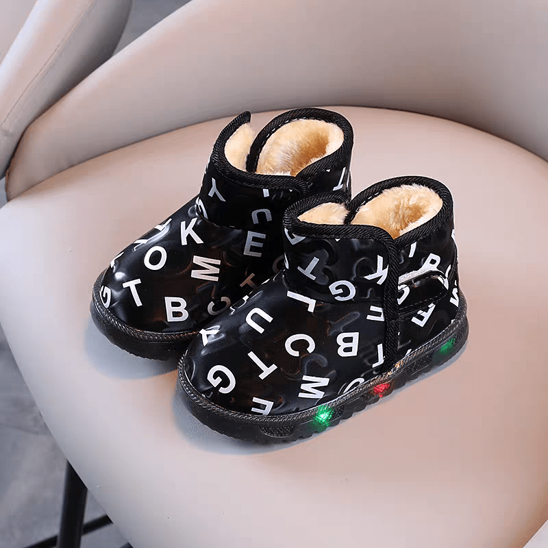 حذاء راقي مضيء ومبطن بفرو من الداخل بنمط حروف