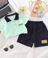طقم ولادي انيق مكون من قطعتين تي شيرت بأكمام قصيرة وشورت للاطفال الصغار
