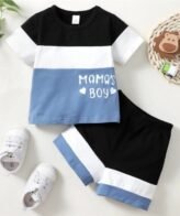 طقم ولادي مكون من قطعتين شورت مع تي شيرت ألوان متباينة