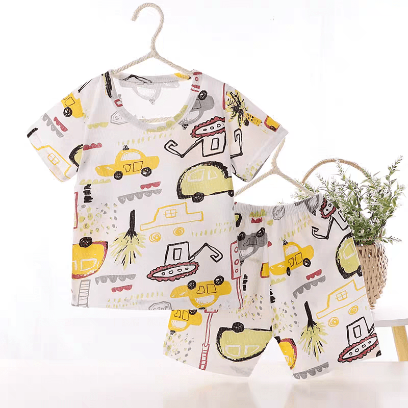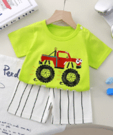 طقم ولادي مكون من تي شيرت وشورت بنمط سيارات