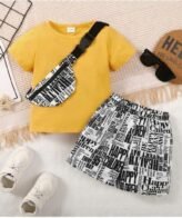 طقم ولادي انيق مكون من قطعتين تي شيرت بأكمام قصيرة وشورت للاطفال الصغار