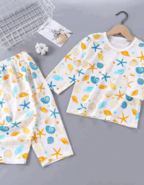 طقم بيجاما قطني مكون من بلوفر وسروال بنمط رسوم كرتون