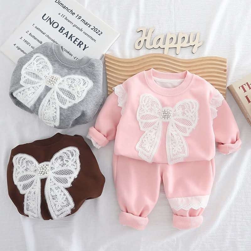 طقم بناتي راقي مكون من بلوزة وسروال بنمط فراشة