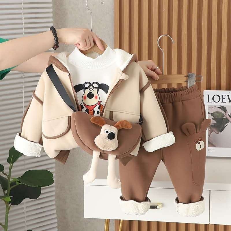 طقم ولادي شتوي مكون من 4 قطع فنيلة وجاكيت وبنطلون مع حقيبة