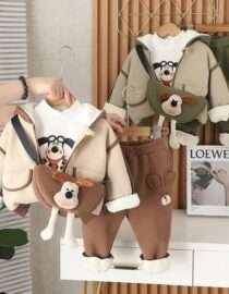 طقم بناتي من قطعتين أكمام طويلة نمط حيوانات