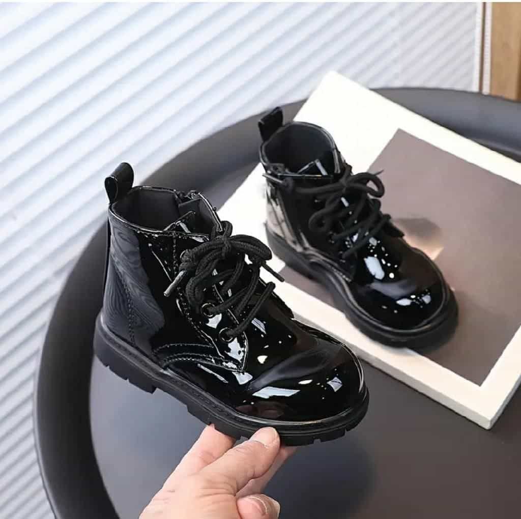 حذاء جلد عصري للاطفال، طويل الرقبة للكاحل بتصميم انيق