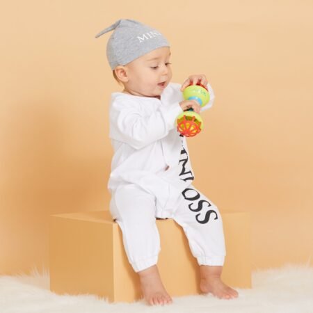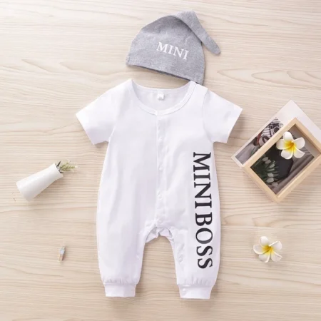 رومبير قطني بأكمام قصيرة مع قبعة مطبوع بحروف ، للأطفال حديثي الولادة