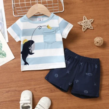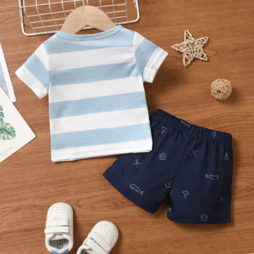 طقم ولادي انيق مكون من قطعتين تي شيرت بأكمام قصيرة وشورت للاطفال الصغار