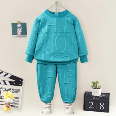 طقم ولادي حديث باكمام طويلة مكون من 2 قطع نمط حروف