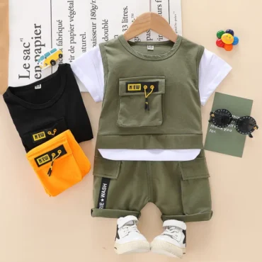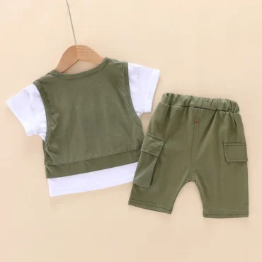 طقم ولادي حديث 2 قطع تي شيرت بجيب & شورت نمط حروف