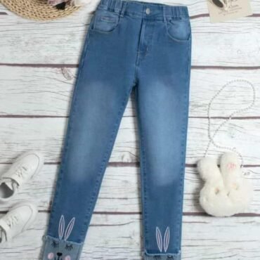بنطلون جينز ضيق نمط الأرنب الأنثوي للفتيات