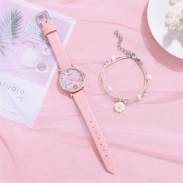 Gaiety-ساعة يد انيقة مع سوار من الجلد ، لون ابيض للنساء والأطفال، مع الكرتون
