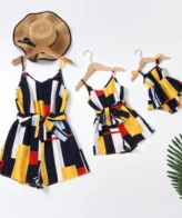 جمبسوت للأم وابنتها ملون انيق وبقماش بارد وربطة خصر