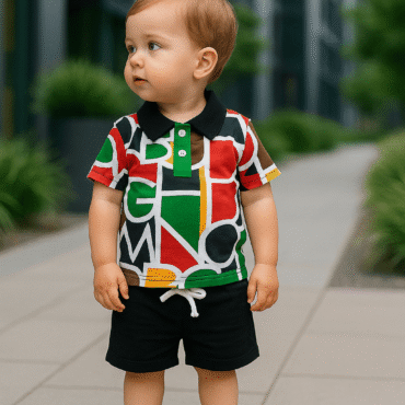 طقم مكون من تيشيرت بأكمام قصيرة وشورت بتصميم عصري ورائع للأولاد