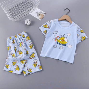 طقم ولادي صيفي مكون من قطعتين تي شيرت و شورت بتصميم جذاب