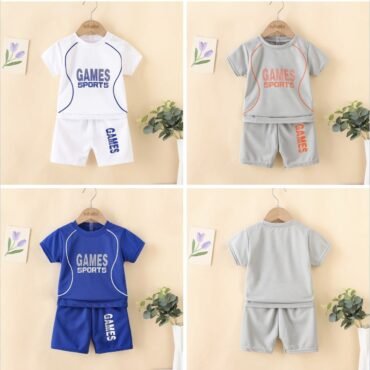 طقم شورت رياضي مكون من قطعتين تي شيرت وشورت