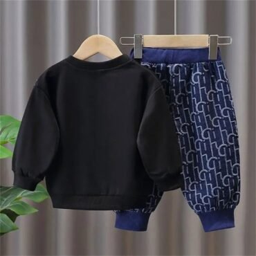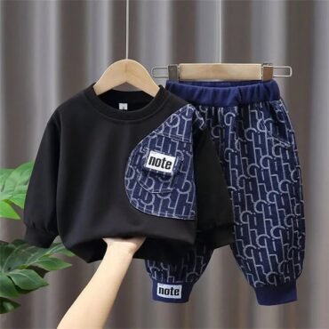 طقم ولادي راقي من قطعتين بلوفر بأكمام طويلة وسروال